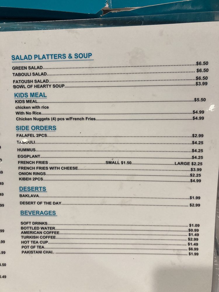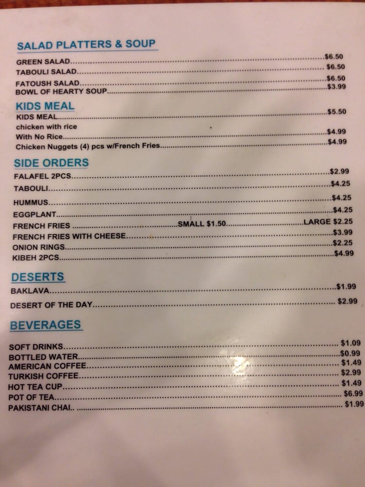 W/ soup, hummus, rice, tabouli.