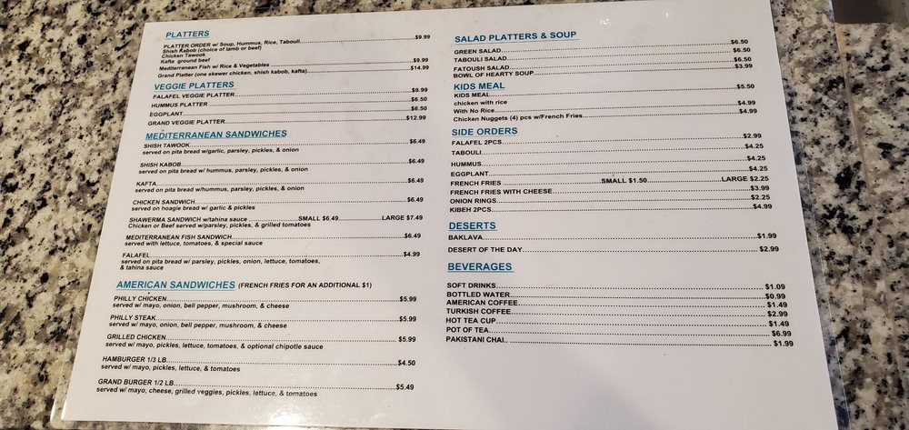 Introducing Grand Cafe, a Middle Eastern restaurant located at 1887 N Plano Rd Richardson, TX 75081. This family-owned gem offers a warm and inviting atmosphere, with a menu that includes delicious gyro, lentil soup, chicken platter, Philly Chicken sandwich, and Grand Burger. Customers rave about the high-value lunch options, friendly owners, and top-notch customer service. The Grand Platter is a must-try, featuring a combination of different kababs on rice with flavorful hummus and pita bread. While the decor may be dated, the homemade taste of the food more than makes up for it. Whether you're a regular or a first-time visitor, Grand Cafe will leave you coming back for more. Don't miss out on this hidden gem for a taste of authentic Middle Eastern cuisine with a cozy family vibe.